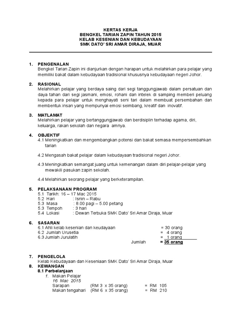 Jurulatih Seni Tari Sekolah Seni Malaysia Kuching. KERTAS KERJA DASAR PROGRAM MOTIVASI GURU 1. Contoh Kertas Kerja Untuk Anak 3 Tahun.